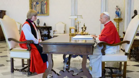 Insiguro y'isanamu, Nyuma y’ikiganiro cyihariye hagati yabo, Sarah Mullally yavuze ko bombi bahuzwa no gusengera ubutabera “n’amahoro mu isi yacu”. Sarah Mullally agowe no gucikamo ibice kw'itorero rya Anglikani ku isi aho amatorero Anglikani muri Afurika yatangaje ko atakiri munsi y’amategeko y’uyu ubakuriye ahandi ku isi.