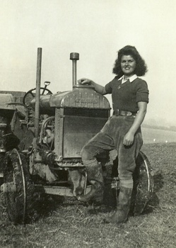 Sometimes I had to carry pipes for building new greenhouses on my big trailer, and at other times collect dozens of boxes of vegetables and take them from the fields to the packing sheds, where they would be sorted to be sent to Covent Garden. - I had a 'mate' for these occasions - one of the lorry-load of German prisoners of war who would arrive every morning to do agricultural work. At first we were all reluctant to go near them. But soon we found that they were not difficult to get on with, and I usually had one of these men helping me every day. We got along fine together, in fact I picked up quite a bit of the German language at that time. My land Army wage was 52 shillings a week - I was paid ten shillings more than the other girls, as my work was considered a key position. I also got 'dirt' money for row crop spraying, which was a few shillings more. We worked 52 hours a week in spring and summer, from 7.30am to 5.30pm, and in winter 48 hours from 8am till 5pm, with an hour for lunch, from 1 to 2pm. I was living in Worthing for five years at this time, and it was not always easy to reach a lorry pick-up point at 7.30 on dark mornings, especially if one had been dancing until midnight the previous evening! Sometimes I would get there too late, so in desperation I would be forced to thumb a lift - sometimes in a car, sometimes in a huge lorry - and once a Colonel told his driver to stop for me! I always had some tale of adventure to tell when I finally got to work, but it did not happen very often.