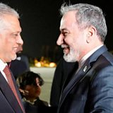 (Photo: Pakistan's Foreign Minister Mohammad Ishaq Dar welcomes Iranian Foreign Minister Abbas Araqchi upon his arrival, in a location given as Islamabad. 25 April 2026. Credit: Reuters)