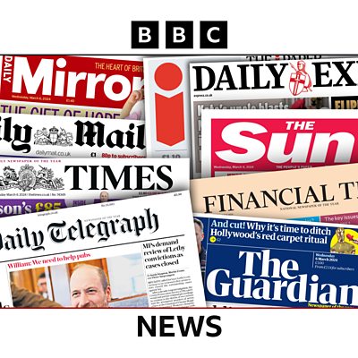 A look at what's making the headlines in today's newspapers. (Image: BBC).